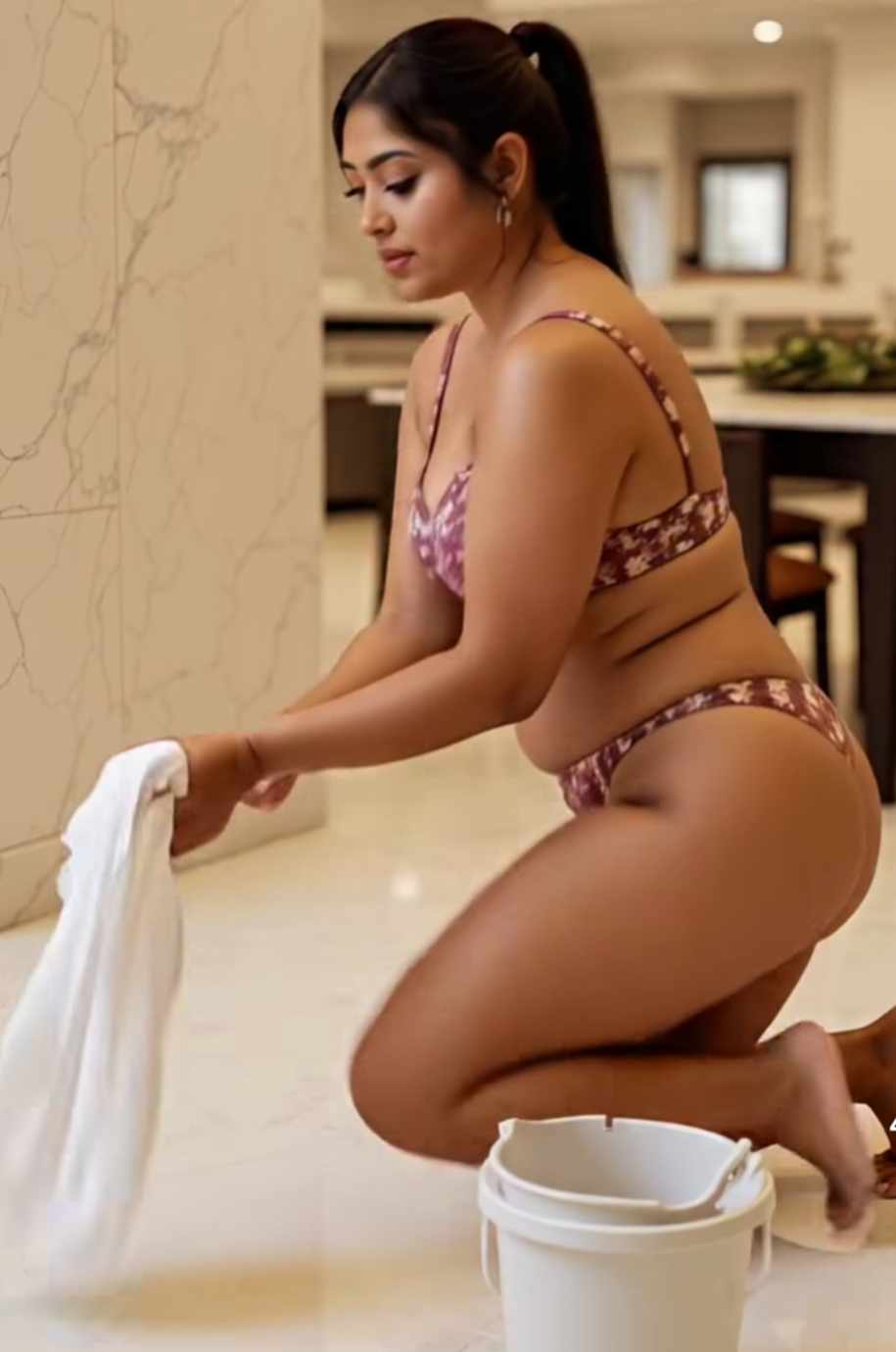 Suhani was a beautiful 26-year-old woman. She was tall, her hair so long it hung down to her full curves. She had prominent cheekbones, pink lips, a long neck, and slightly oversized breasts surrounded by large brown circles. She had a slender waist, with a deep navel visible in the center. Her lower back was also wide. Her thighs were full, and her buttocks were perfectly round and large.